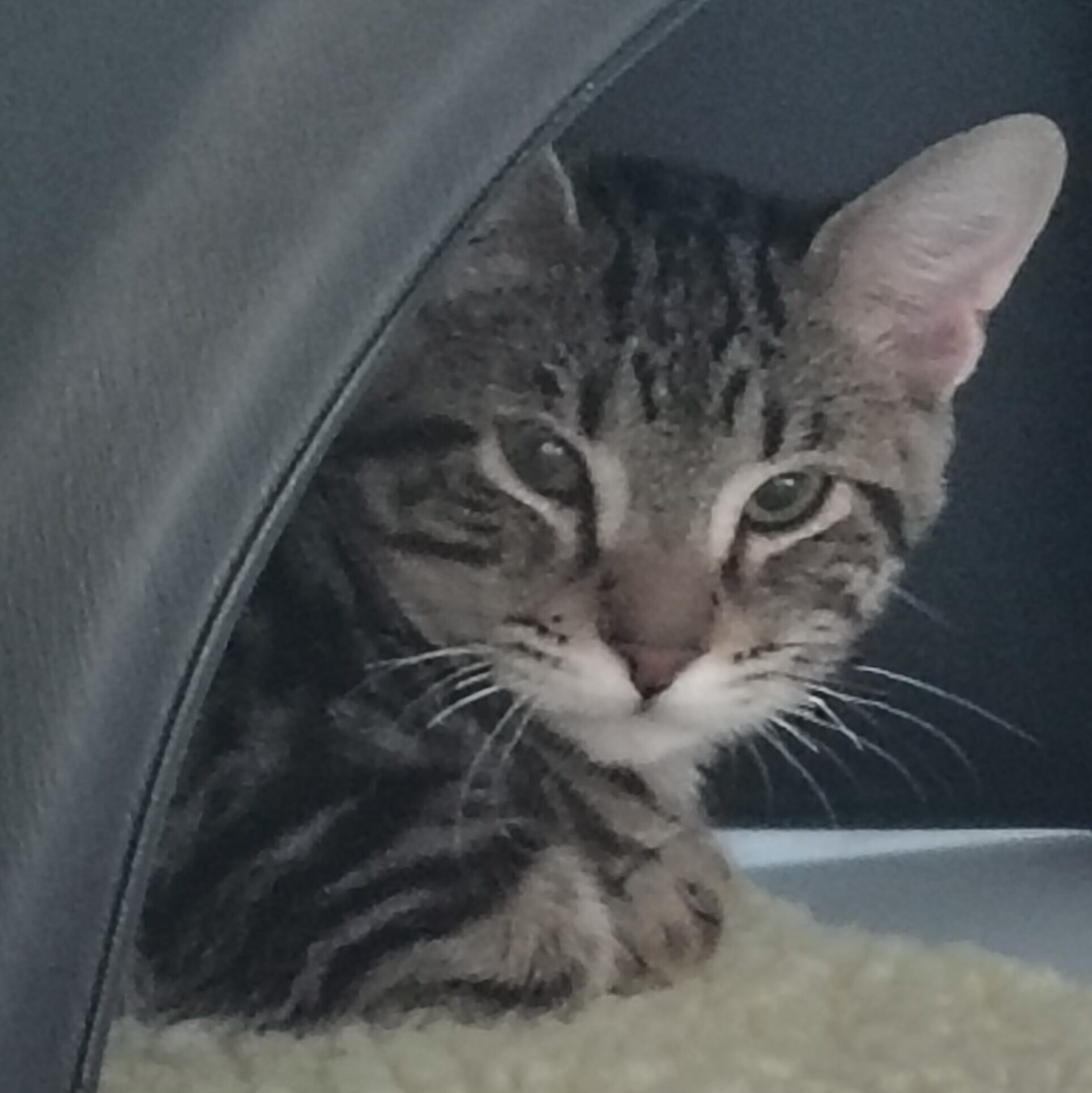 These two 4-month-old brothers are brown tabby cuties looking for their forever homes! Both boys are neutered, vaccinated, and microchipped. They are ready to join a loving family. Tigger and Ollie may be a little shy at first, but once they feel safe, their playful, curious sides shine through. They’re learning every day with gentle socialization at Tabby Tea Cat Lounge, and they’d thrive in a patient home that will let them blossom at their own pace.